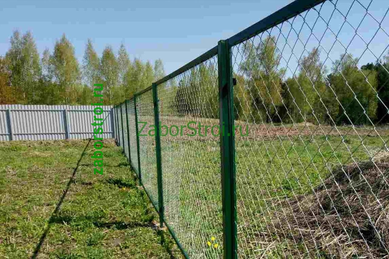 Заборы из сетки рабица в секциях из профиля 25 метров